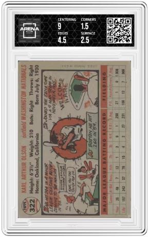 1956 Topps Karl Olson #322 Baseball Arena Club 2