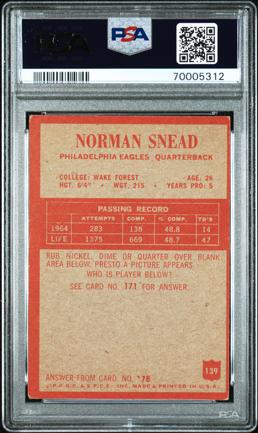 1965 Philadelphia Norman Snead #139 Football PSA 3