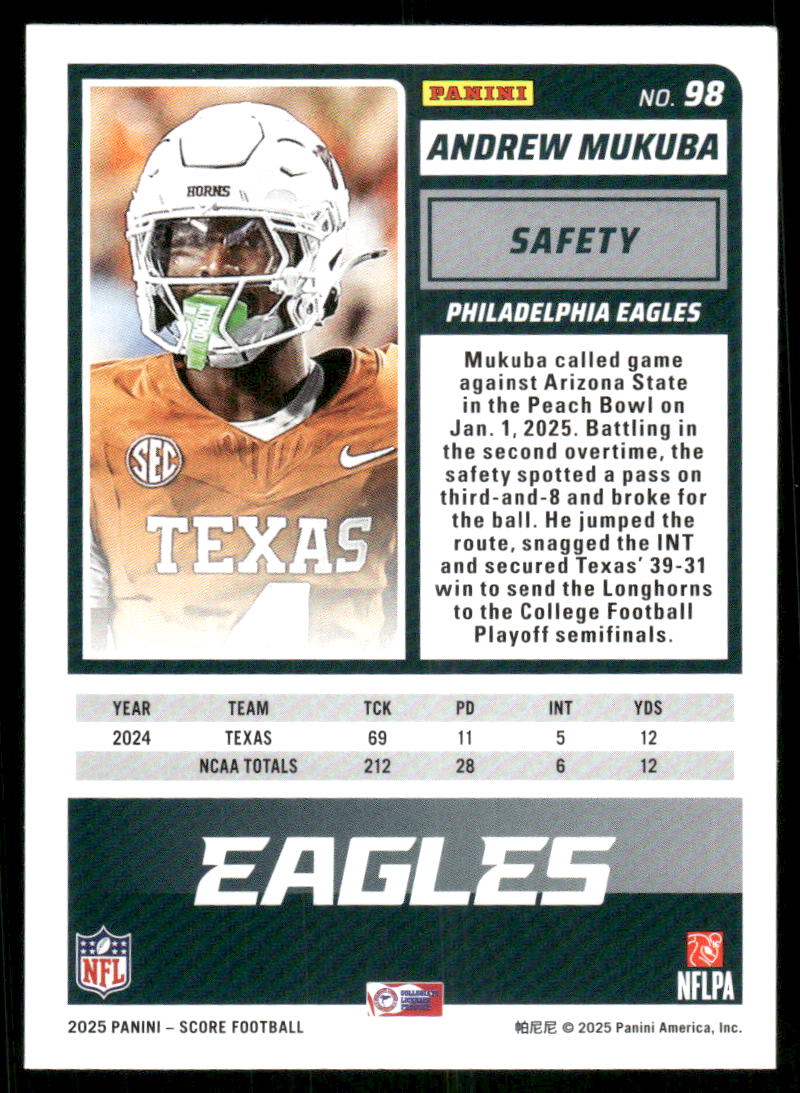 2025 Score A Treat Andrew Mukuba #98 RC Football