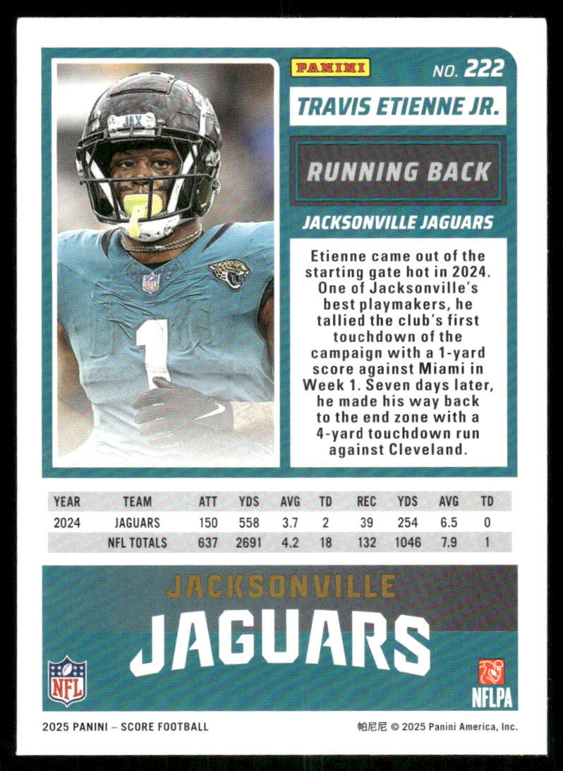 You are purchasing a 2025 Score A Treat Travis Etienne Jr. #222. You will receive the exact item in the photographs. Thank you for looking. Listed With Mascot.