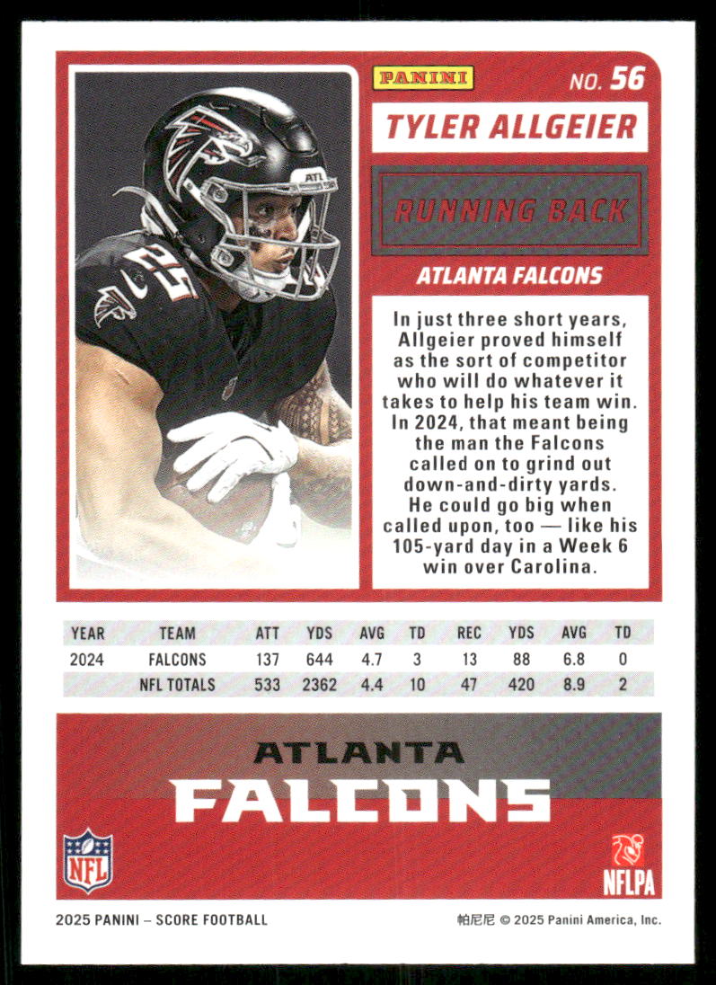 You are purchasing a 2025 Score A Treat Tyler Allgeier #56. You will receive the exact item in the photographs. Thank you for looking. Listed With Mascot.